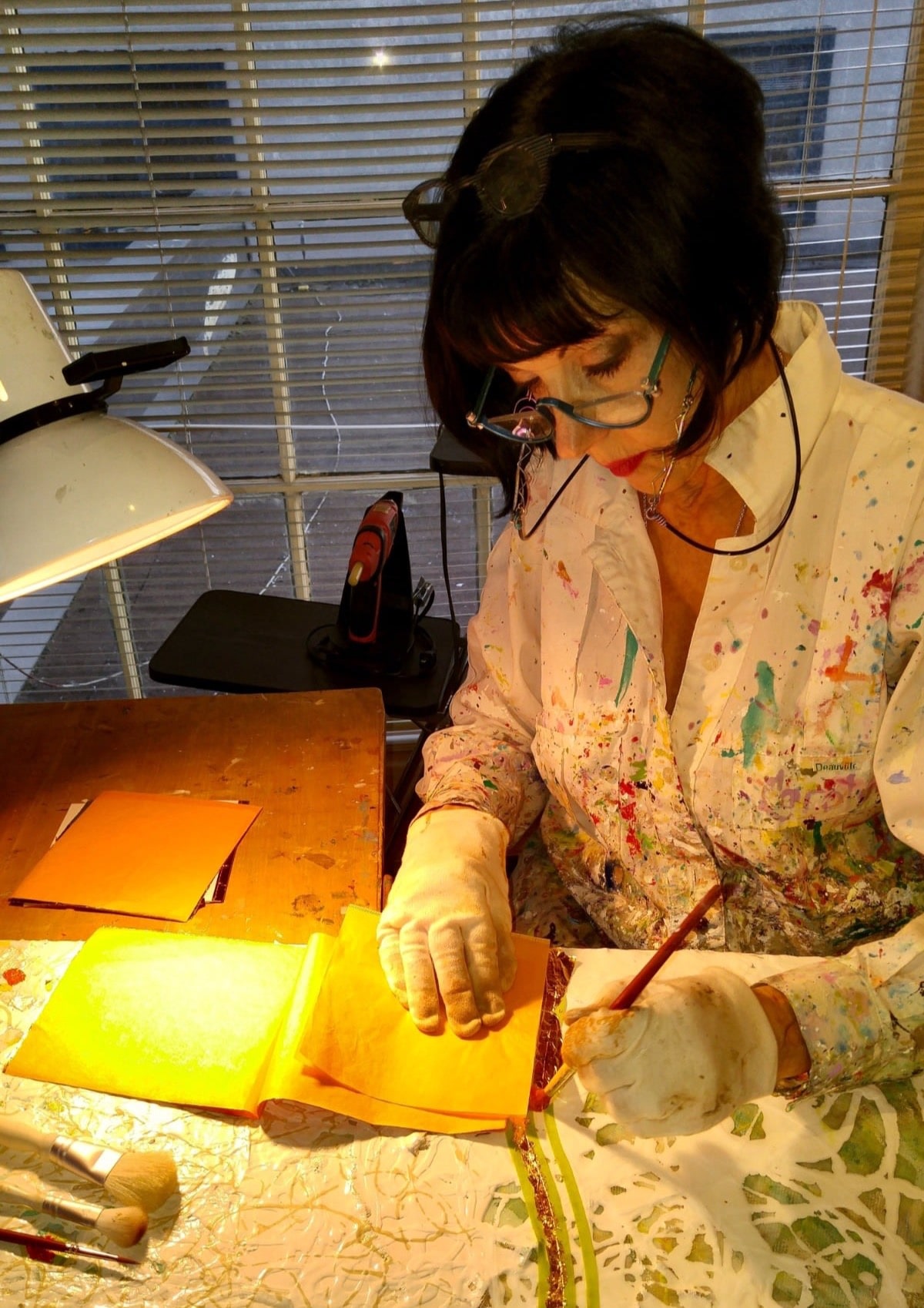 Love of color is expressed throughout my work; from chunks of vibrant acrylic paints to ethereal tones of inter-woven chalk pastels and delicate, dribbles of gold leaf. I love the soulful expression of luxurious visual images emerging on canvas and paper.